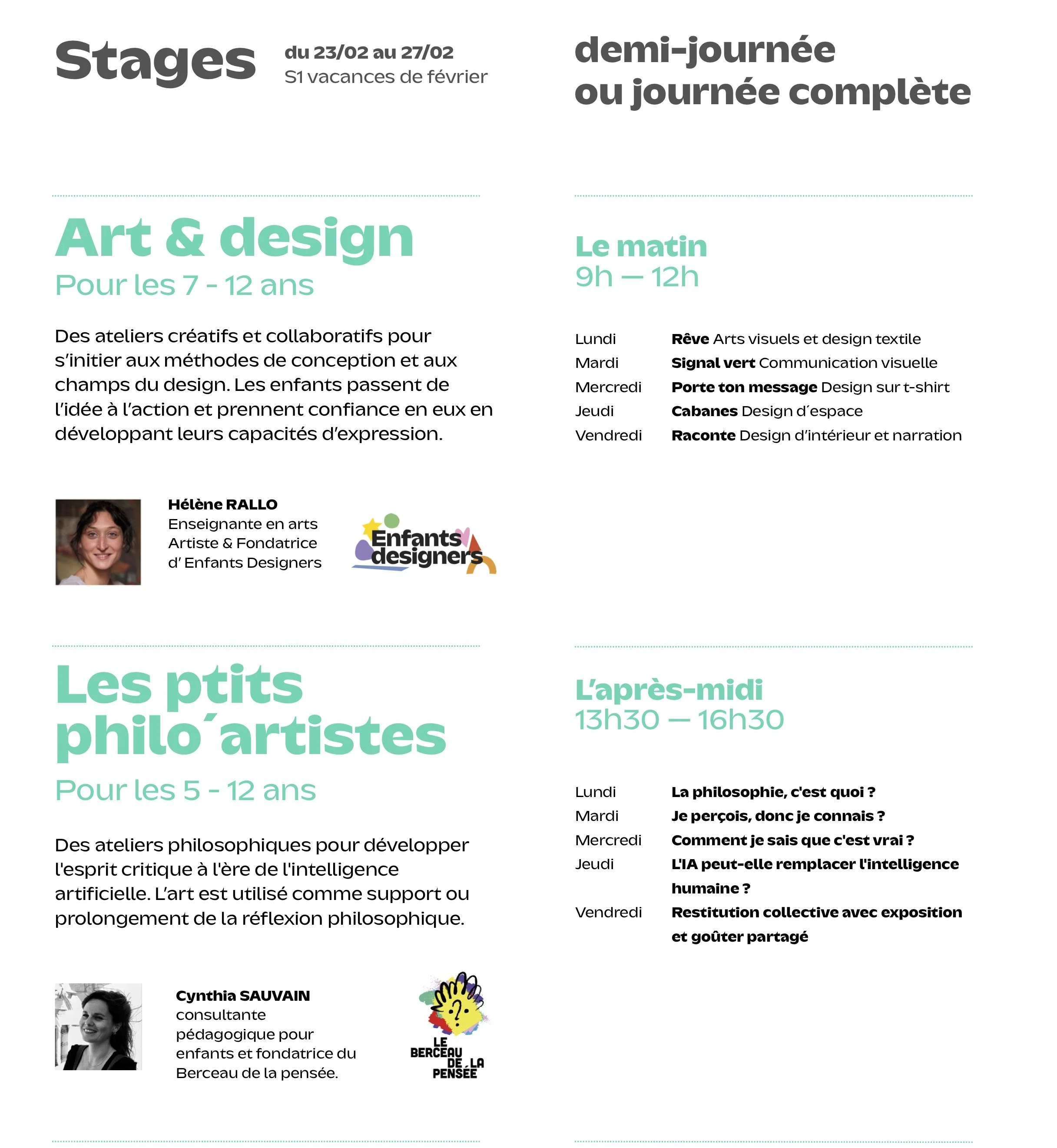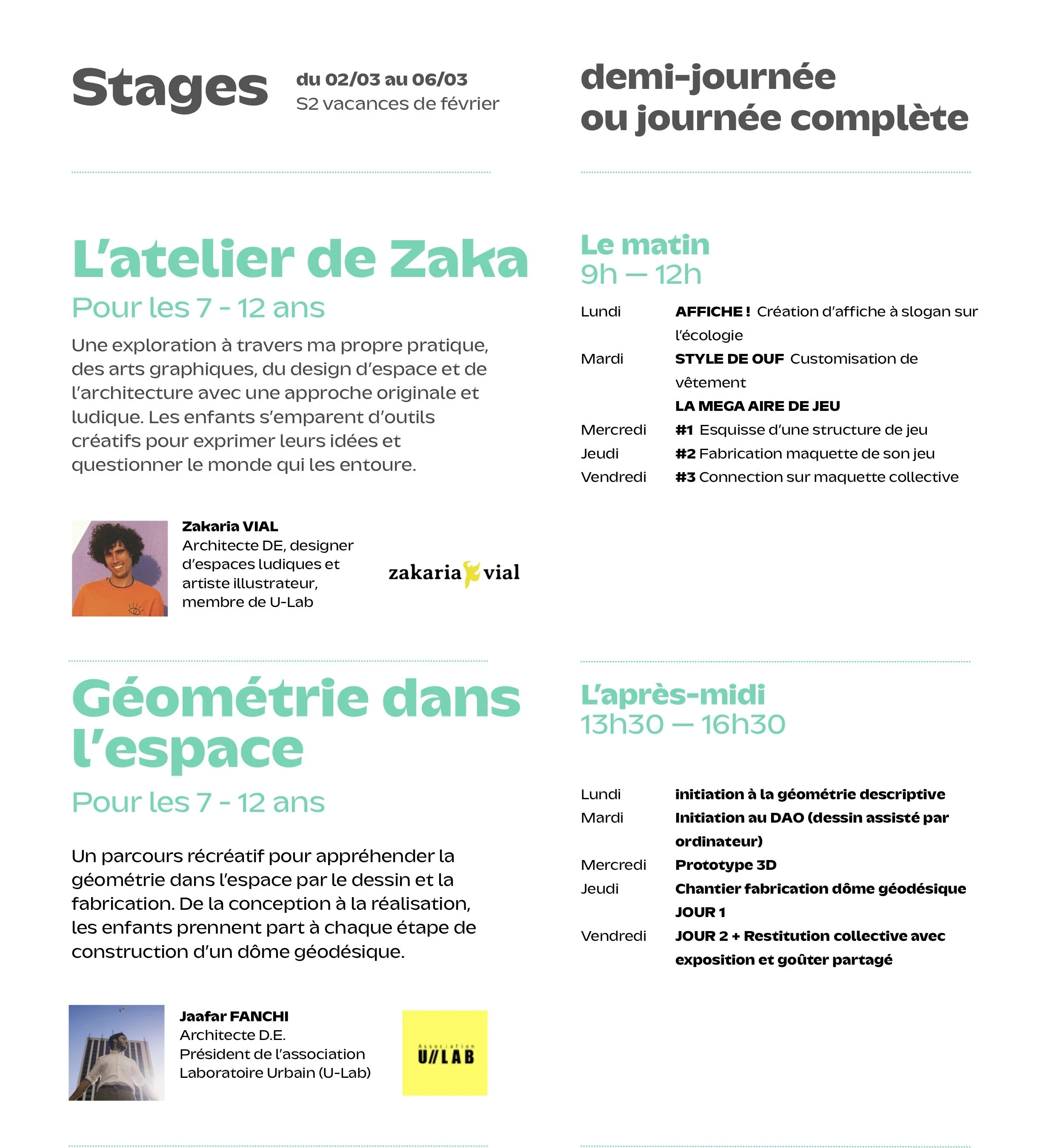Informations et tarifs Réserver le stage - acompte Réservation par mail ou par téléphone Stage demi-journées : 120 eurosStage journées complètes : 340 eurosAvec pique-nique et promenade dessinée au Jardin des Plantes pour se ressourcer.Garde possible jusqu’à 18h - 10 €/enfant