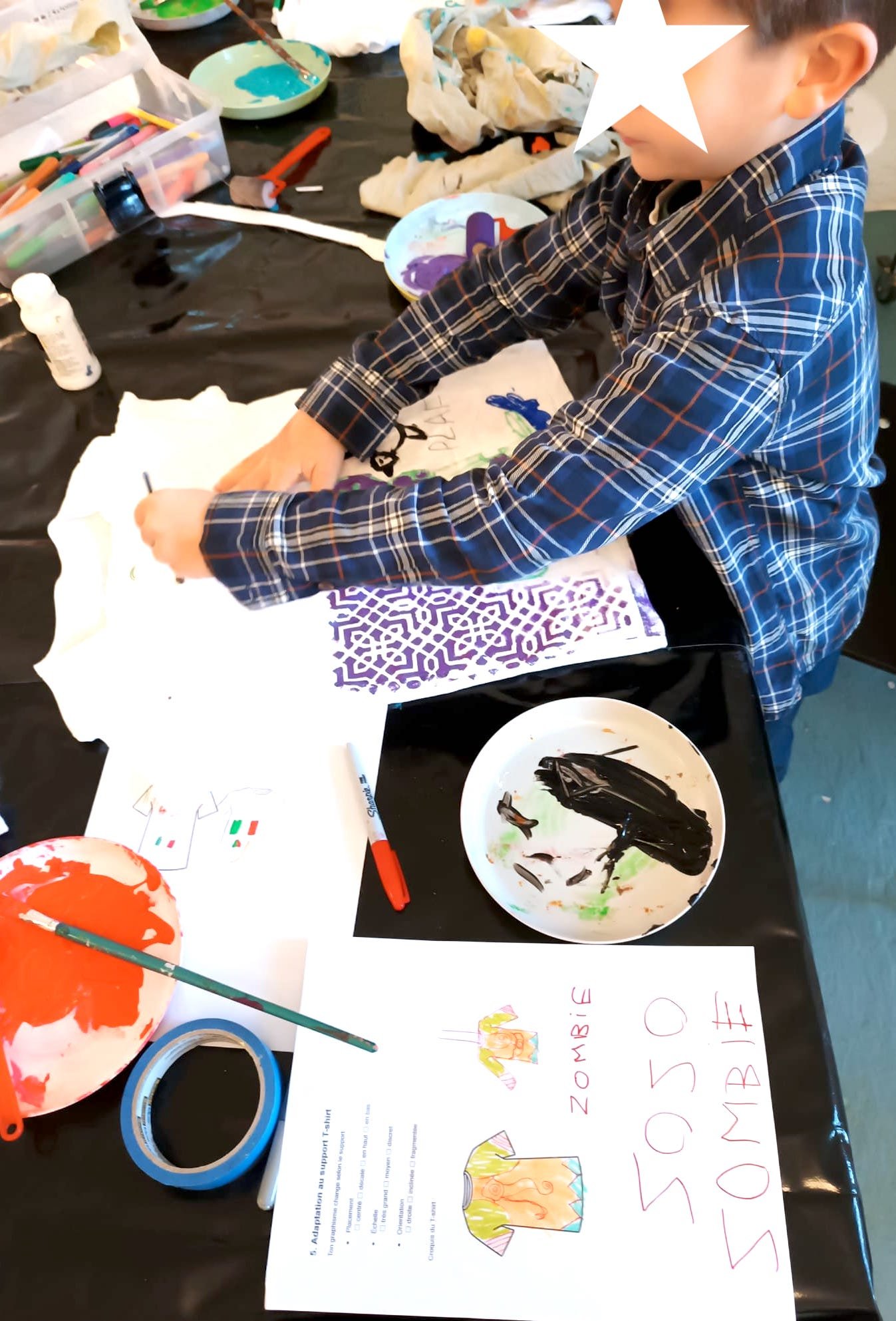 Une immersion créative dans les bases de la communication visuelle et du design textile, à travers une approche collaborative, pensée pour eux. Les enfants imaginent le visuel de leur t-shirt et transforment symboles, motifs et idées en créations uniques.